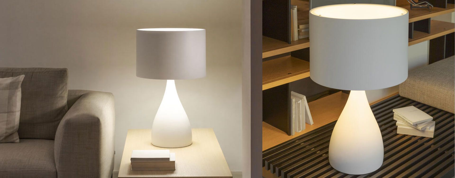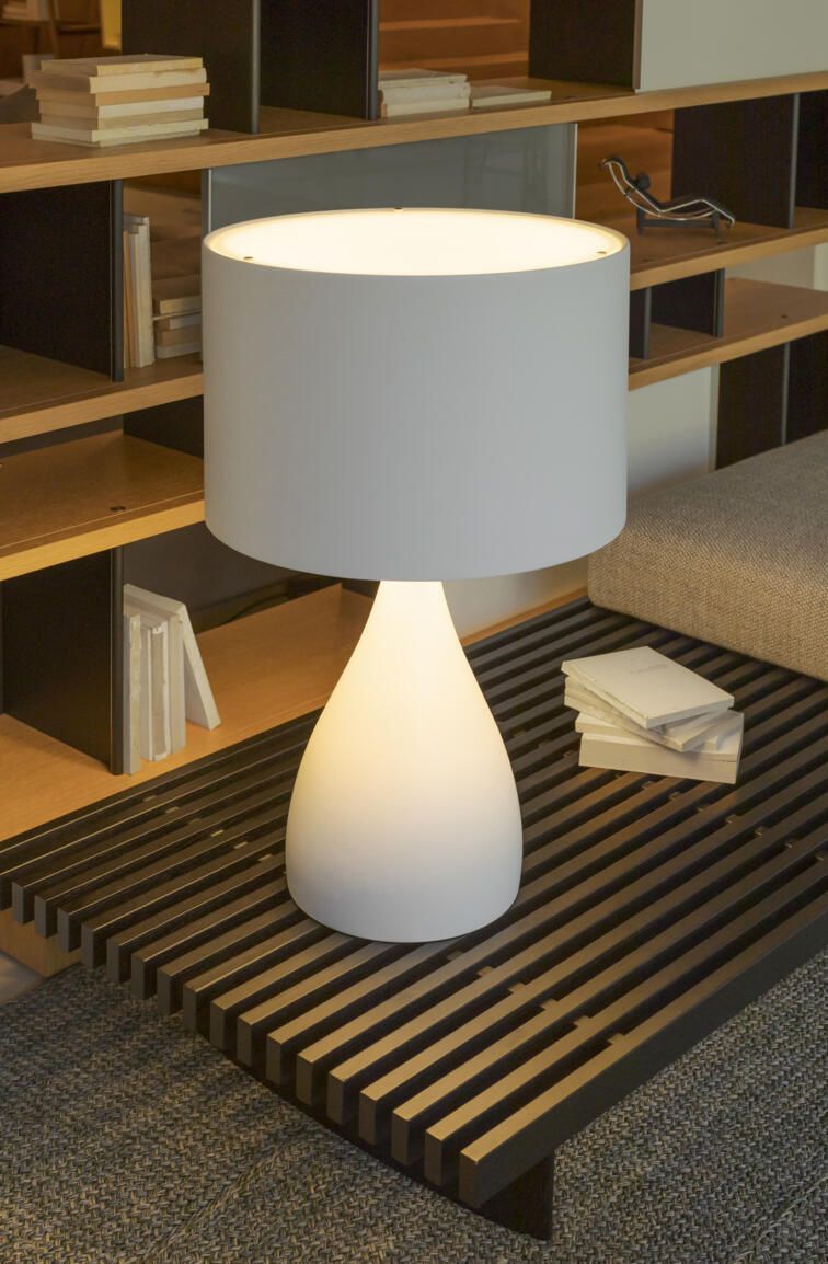 La lámpara Jazz distribuye una iluminación indirecta que ayuda a crear espacios íntimos y acogedores. La luminaria de pie Jazz posee regulador de intensidad en el cable.