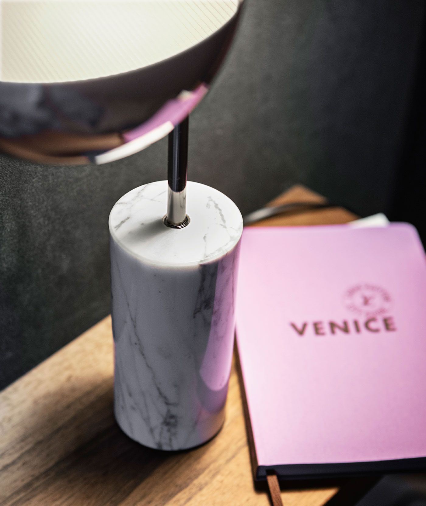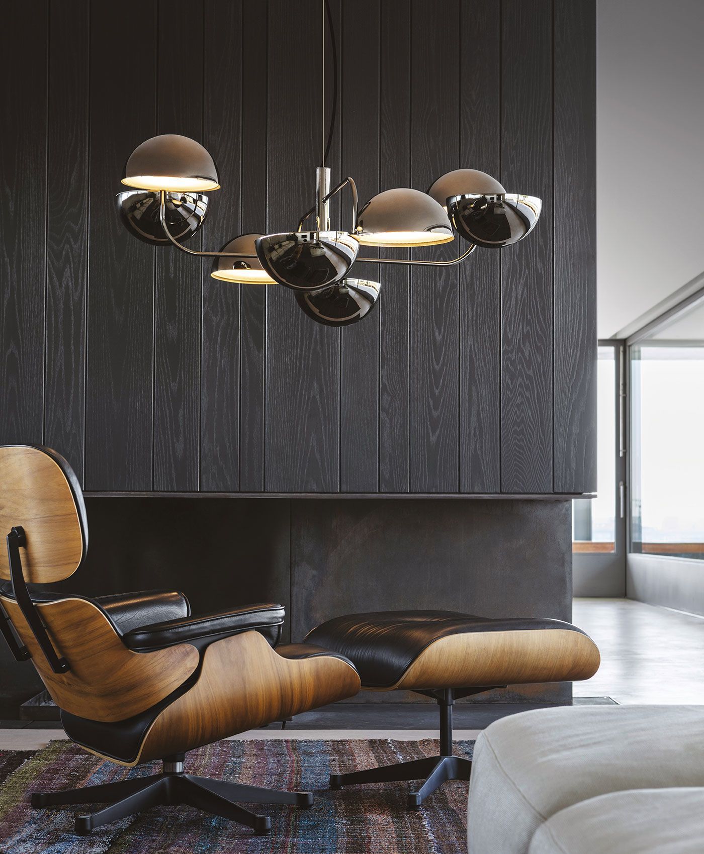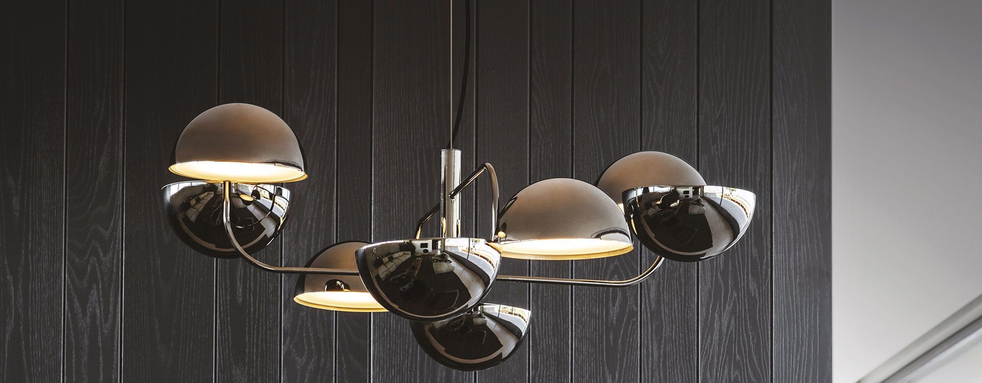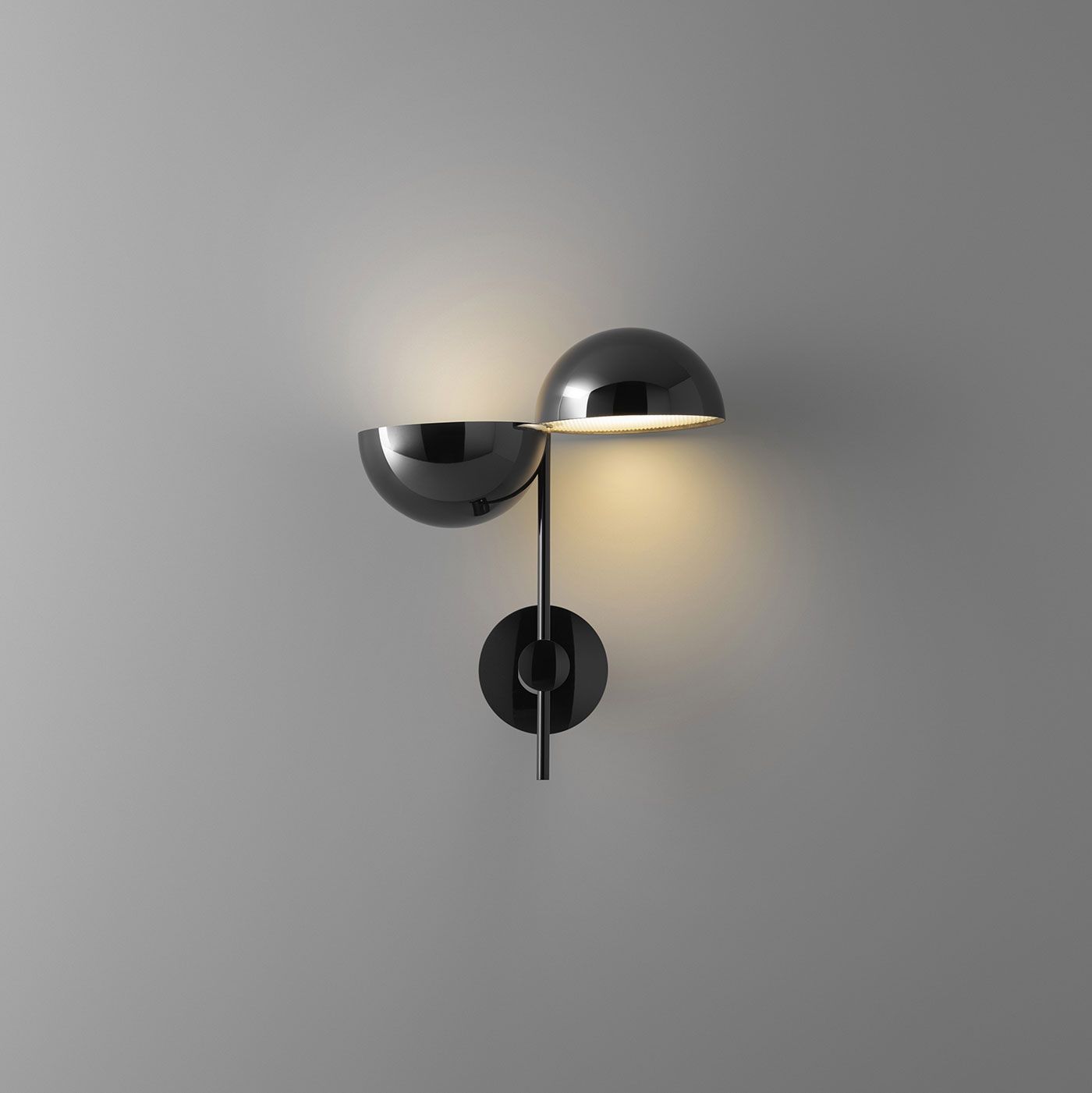 La interacción dinámica y lúdica entre los hemisferios de cromo pulido crea un diálogo único, dando vida a volúmenes de luz y sombra que se integran a la perfección en nuestro día a día.