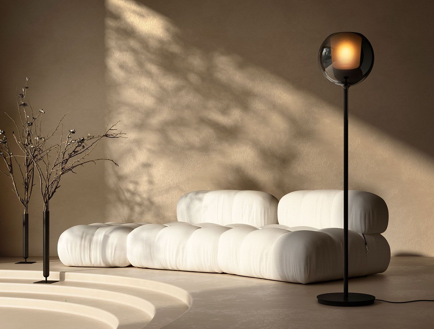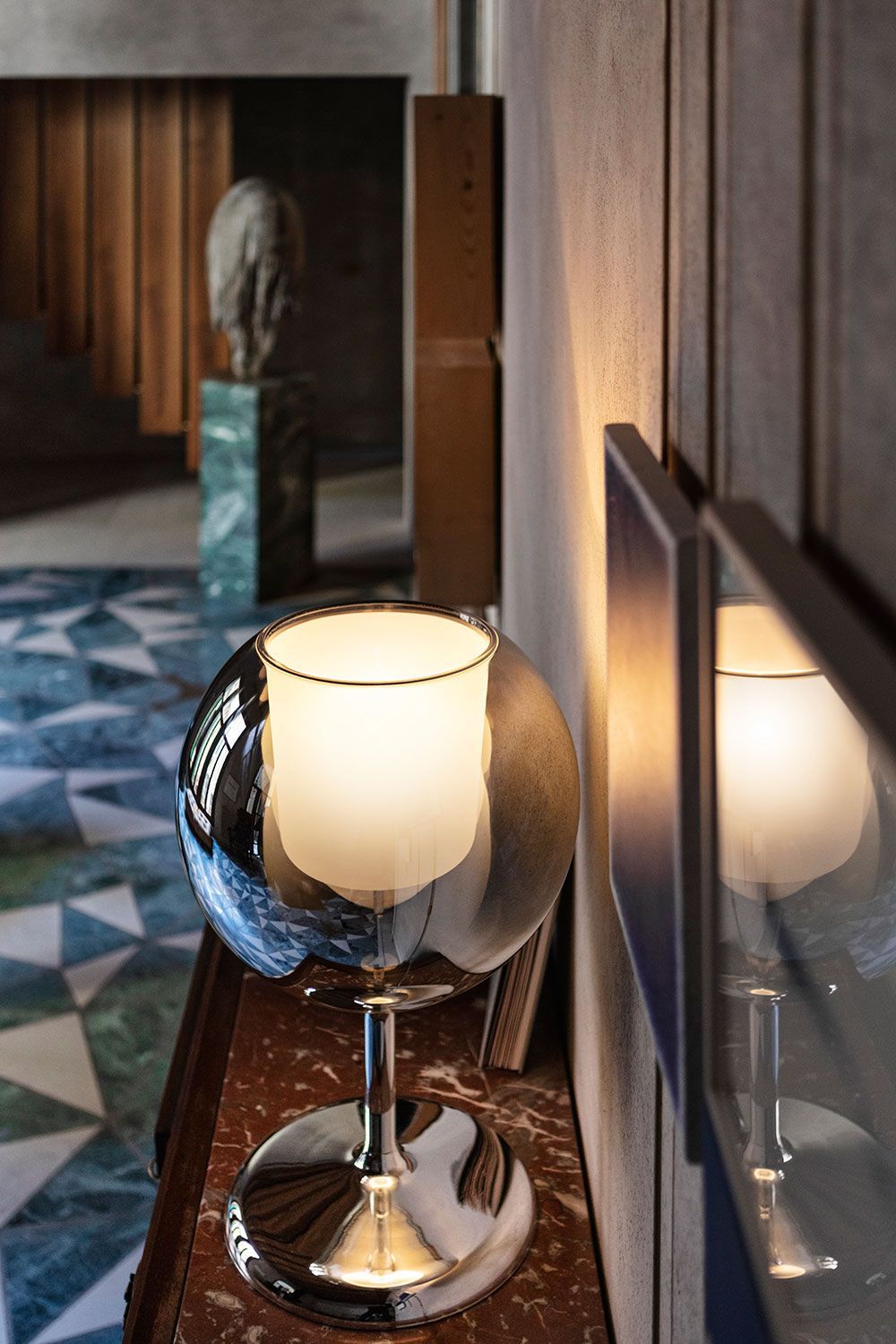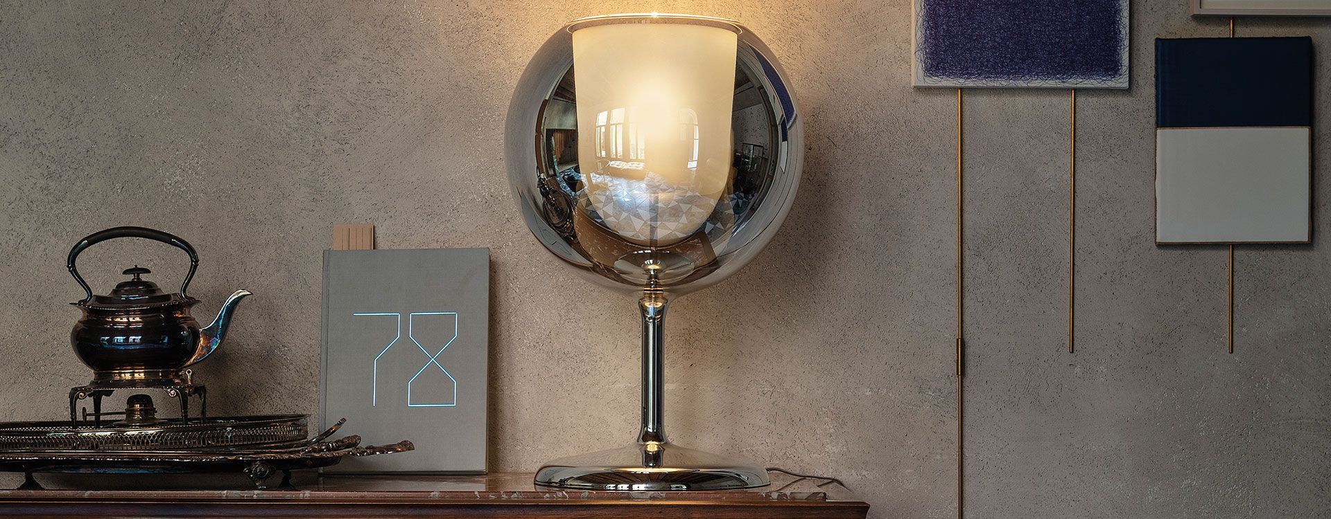 Glo es un icono de nuestra colección: una esfera de cristal que realza el brillo de la luz, creando un juego de reflejos entre la lámpara y el espacio, o incluso entre las propias lámparas.