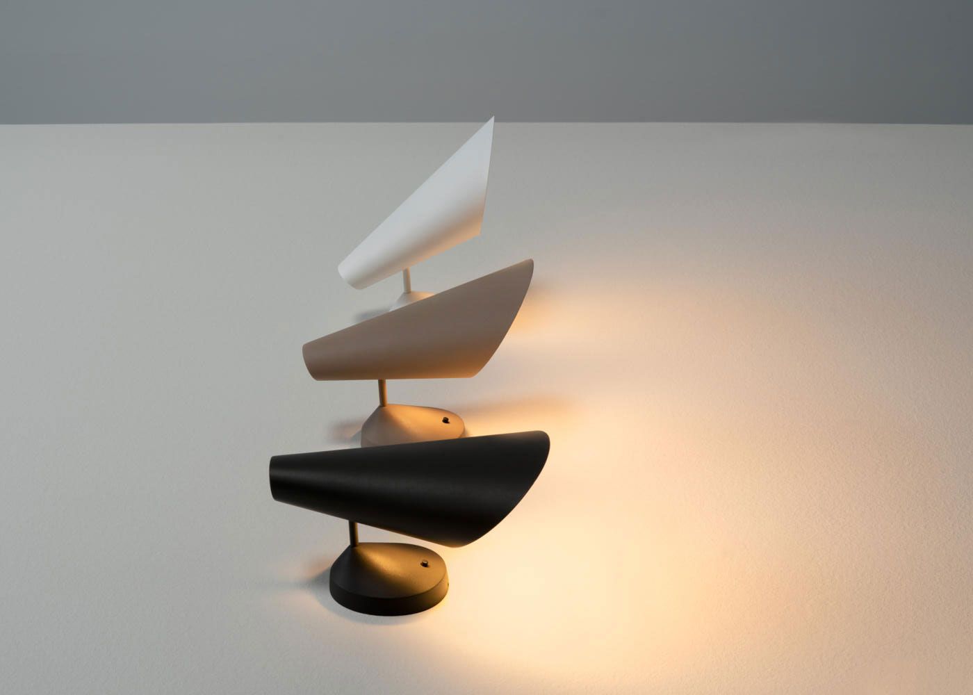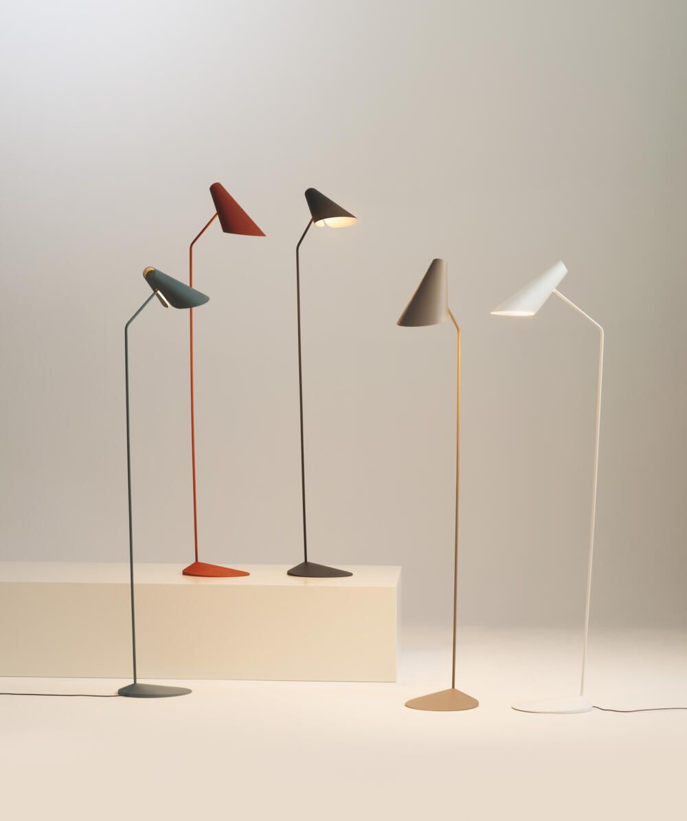 Las superficies suaves y la silueta refinada de la lámpara de pie y sobremesa I.Cono ocultan mecanismos avanzados para girar la pantalla, ideal para una iluminación y lectura de precisión.