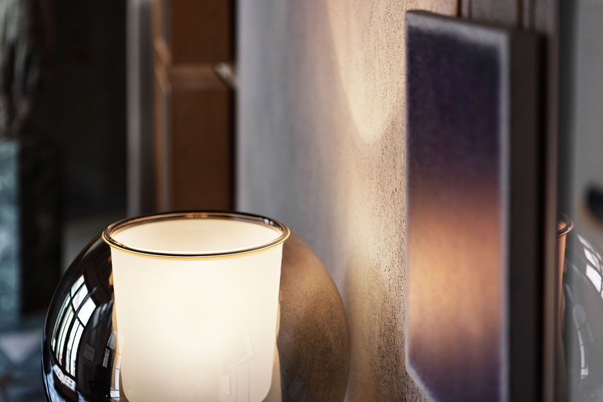 Glo es un icono de nuestra colección: una esfera de cristal que realza el brillo de la luz, creando un juego de reflejos entre la lámpara y el espacio, o incluso entre las propias lámparas.