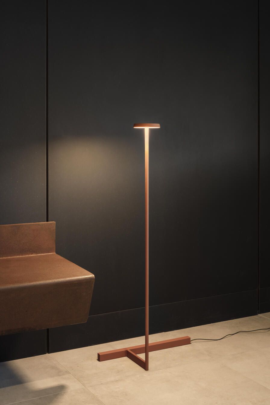 Las lámparas de pie y sobremesa de la colección Flat destacan por su versatilidad y elegancia.Disponibles en tamaños pequeños y grandes, pueden incorporar un disco simple o doble, ya sea en un formato compacto o tipo estante que, además de iluminar, funciona como un elemento de mobiliario.