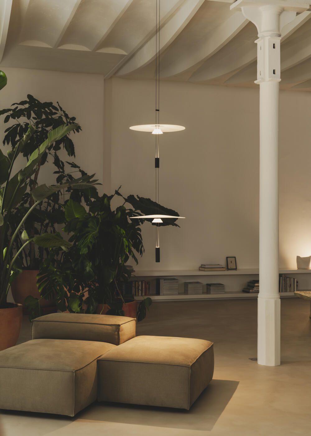 La colección Flamingo reinterpreta la lámpara colgante con una estética poética que combina funcionalidad y elegancia.Estas luminarias de suspensión están formadas por difusores translúcidos de material termoplástico, que emiten una luz ambiental suave, junto con terminales LED que proyectan una iluminación puntual y precisa.