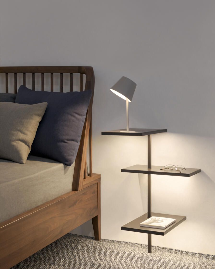Las lámparas de pie y sobremesa Suite establecen una nueva relación entra la luminaria y las personas que habitan el espacio, invitándolas a interactuar con ella, a sentirla y a vivirla.
