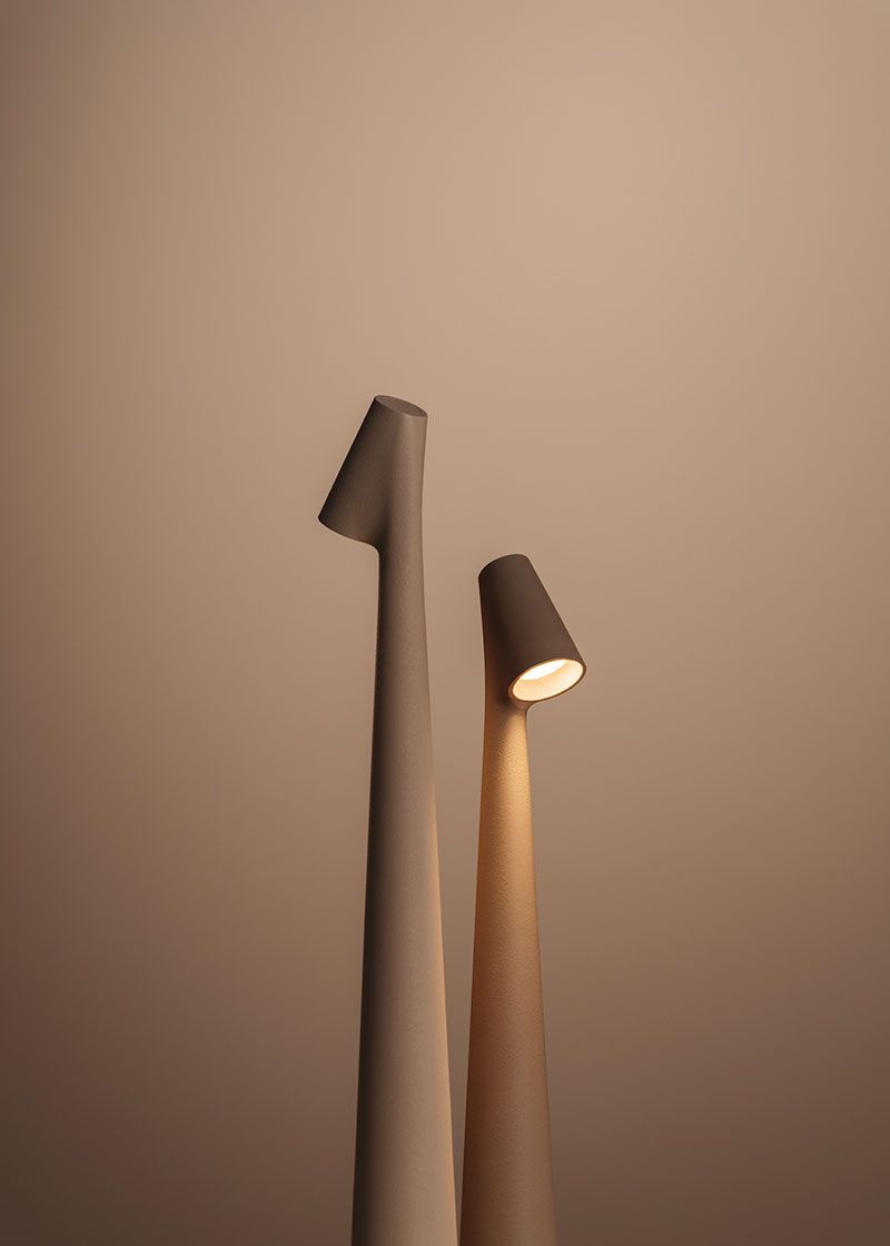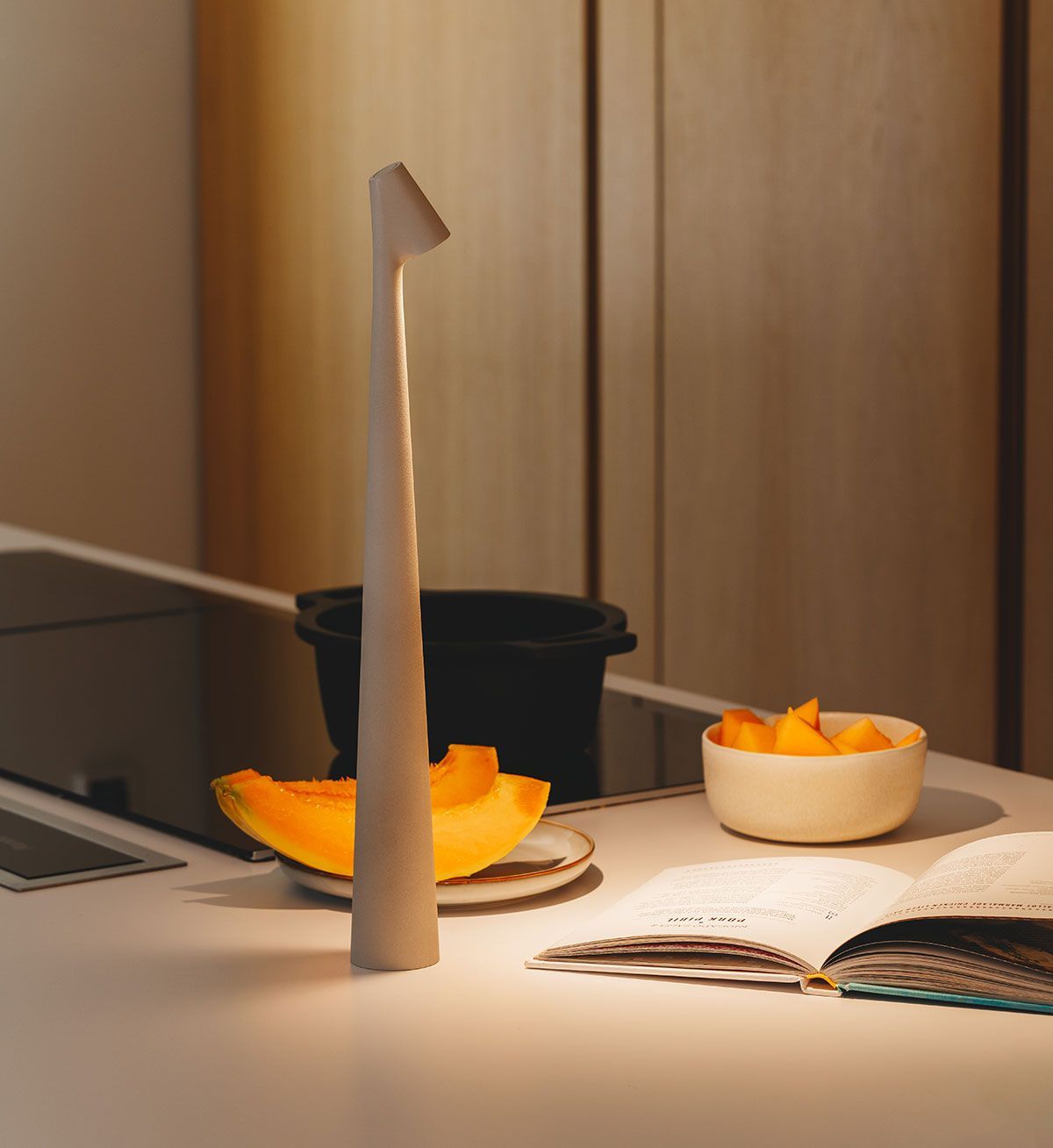 La lámpara de sobremesa Africa combina riqueza formal y material con capacidades de iluminación de alto rendimiento.Definida por un grácil tronco cónico, esta luminaria te invita a estirar el brazo para alcanzarla. Disponible en dos tamaños, la textura mate lacada de la lámpara portátil Africa y sus cuatro tonos naturales aportan calidez y tangibilidad al diseño. Su fuente de luz LED recargable proporciona tres niveles de intensidad que se controlan con un simple botón en la cabeza.