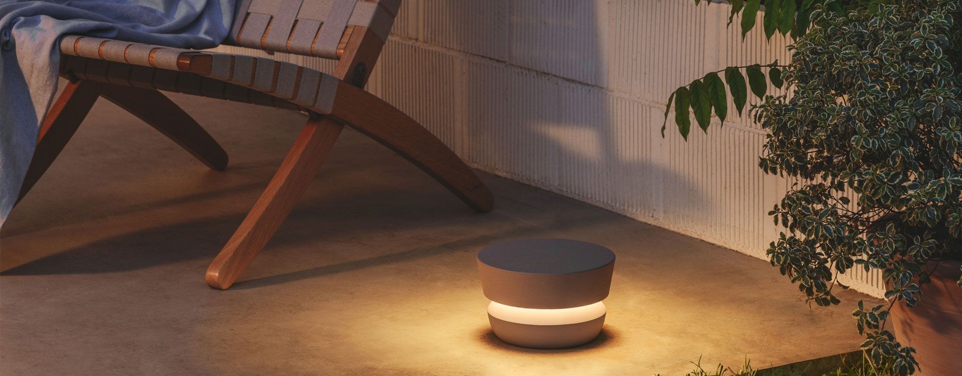varios tonos, esta luminaria de formas románticas proporciona luz ambiental y uniforme. Al ser regulable, permite convertir una zona de estar al aire libre en una acogedora sala de estar al